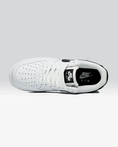 The Nike Air Force 1 Low ’07 White Black Pebbled Leather features a white pebbled leather upper with black Swooshes and heel panels. Woven Nike labels on the tongue offer a retro feel. At the base, a white Air sole adds the finishing touch.